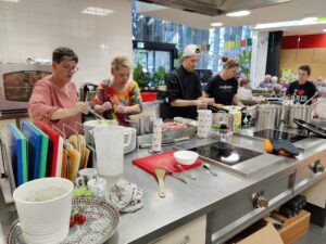 Op de donderdagavond in de oneven weken koken de vrijwilligers van het kookteam een warme maaltijd en gaan we SAMEN AAN TAFEL.